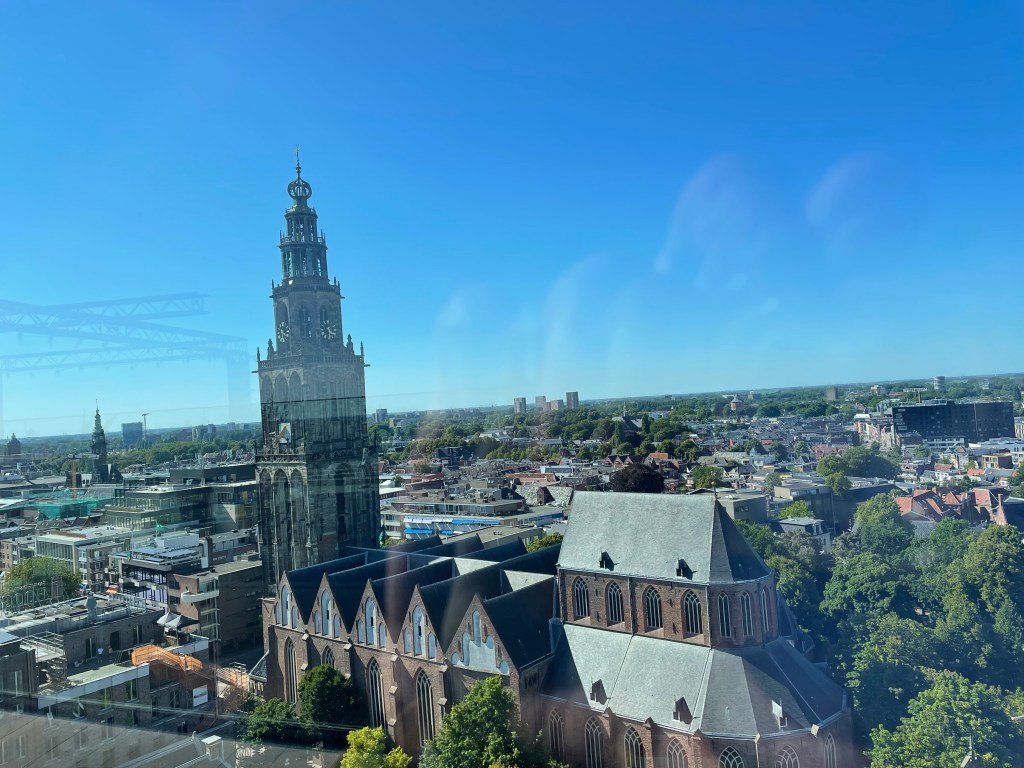Thanks to the very welcoming reception staff, we heard about the Groningen Forum – a striking modern building with nine stories of library, cinema and café and a rooftop terrace with amazing views over the top of the city. We had a lovely time looking at everyone’s roof and also found a good bike shop where we acquired some additional padding (for me – I’ve been suffering), some insoles with extra arch support (also for me – forgot to put my orthotics into my shoes for cycling so my feet have also been suffering) and a new water bladder for a hydration backpack (for Bruce, who sprang a leak earlier). Just to round off the practicalities, we have been to our first laundromat (not laundrette, apparently) of this trip. Turned out to be a good one. I would give it at least four stars (odd socks?) out of five.