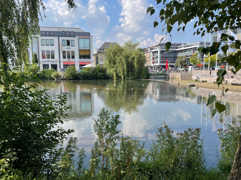 Hotel aanders in the south of Neumünster was lovely when we finally checked in – small, comfortable, beautifully decorated and only nine weeks old. Some building works were still underway in the grounds, but this didn’t interfere with us at all. It was still ridiculously hot, but external metal shutters on the window were doing their very best to keep the room cool. Once showered, neither of us had any enthusiasm for getting sweaty on a bike once again, so we ventured into the centre by bus. It turned out that our 9 Euro regional and local train tickets were valid for buses too, so we had a free mini-tour and vegan dinner courtesy of Burgergallerie near the main station.
