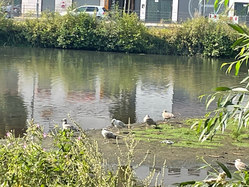 We had the idea of swinging by the sculpture park for a visit the next morning before leaving Neumünster but after bouncing dustily down multiple cobbled streets to find it, we discovered that it didn’t open till midday. We really couldn’t face waiting for so long so we got on our way. The cobbles turned out to be only the start of the problems. We had all sorts of different surfaces but with a good collection of tree roots and potholes, and many switches from one side of the road to the other. We only occasionally managed to get up enough speed to benefit from the cooling breeze – mostly, we cooked, although not as badly as when we were trying to leave Hamburg and Bruce’s phone, our main navigation device, shut down completely in the heat. We had a coffee stop by a very pretty lake at Bordesholm and by an effort of will managed to get back on the bikes and drag ourselves to Kiel. First order of business (of course) was to take the contents of our panniers to the laundrette and then we had dinner and collapsed for an early night.