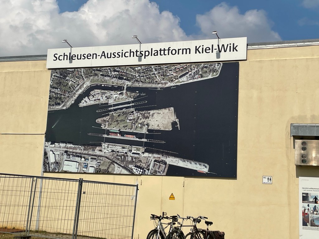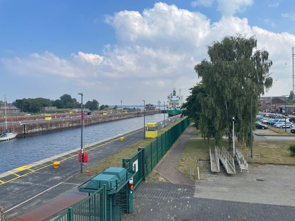 Using another couple of buses, we went to the viewing platform over the Kiel Canal. In Kiel, it’s called the Nord-Ostsee-Canal (North-Baltic-Sea-Canal), which makes a lot of sense. Apparently it’s the busiest artificial waterway in the world, with around 32,000 vessels per year. That’s many more vessels than the Suez Canal from what I could find online, but I still need to find comparative figures on tonnage. There is usually more than one possible measure, but either way, it’s a very busy stretch of water.